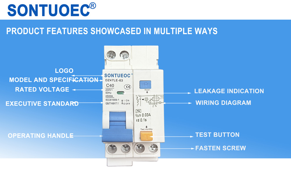SONTUOEC అనేది చైనీస్ సరఫరాదారులు/తయారీదారుల్లో వివిధ చిన్న ఎలక్ట్రికల్ ఉత్పత్తిలో ప్రత్యేకత కలిగి ఉంది. ఉపకరణాలు.DZ47LE ఒక పోల్ రెండు వైర్, 2 పోల్ లేదా 400V 3 పోల్, 3 పోల్ 4 వైర్ కోసం AC 50/60Hz రేటింగ్ వోల్టేజ్ 230V లైన్ కి వర్తిస్తుంది. 4 పోల్ మరియు ప్రస్తుతం 63A వరకు రేట్ చేయబడింది. ఇది ఓవర్లోడ్ మరియు షార్ట్ సర్క్యూట్ నుండి లైన్ మరియు మోటారును రక్షించగలదు