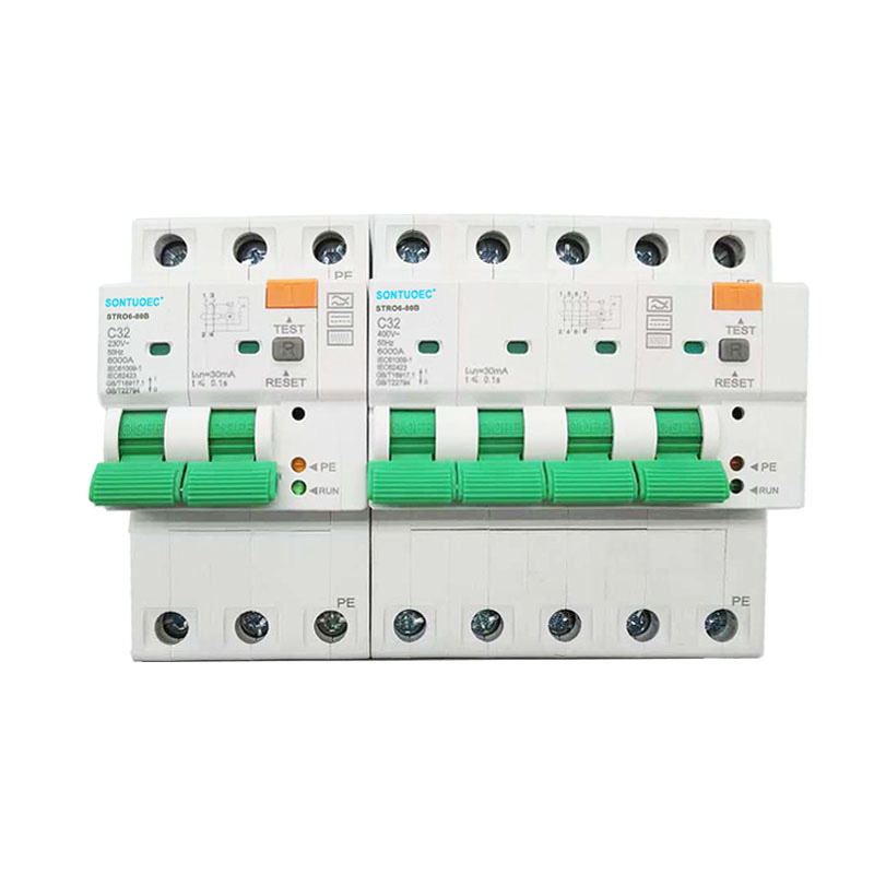 మల్టీ-ఫంక్షనల్ ఇంటిగ్రేషన్: STRO6-80B RCBO ఓవర్లోడ్, షార్ట్-సర్క్యూట్ మరియు లీకేజ్ ప్రొటెక్షన్ ఫంక్షన్లను అనుసంధానిస్తుంది, ఎలక్ట్రికల్ సిస్టమ్స్ రూపకల్పన మరియు సంస్థాపనను సరళీకృతం చేస్తుంది.