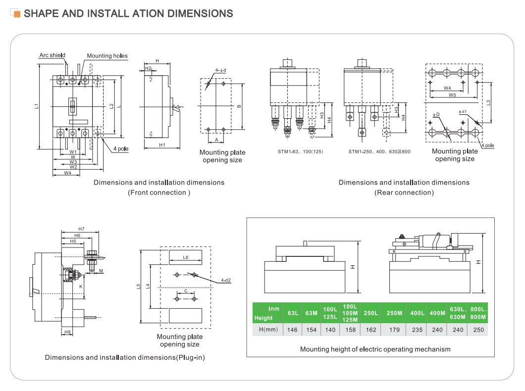 | మోడల్ | STM1-125 | STM1-250 | STM1-400 | STM1-630 | STM1-800 | STM1-1250 | |||||||||||||