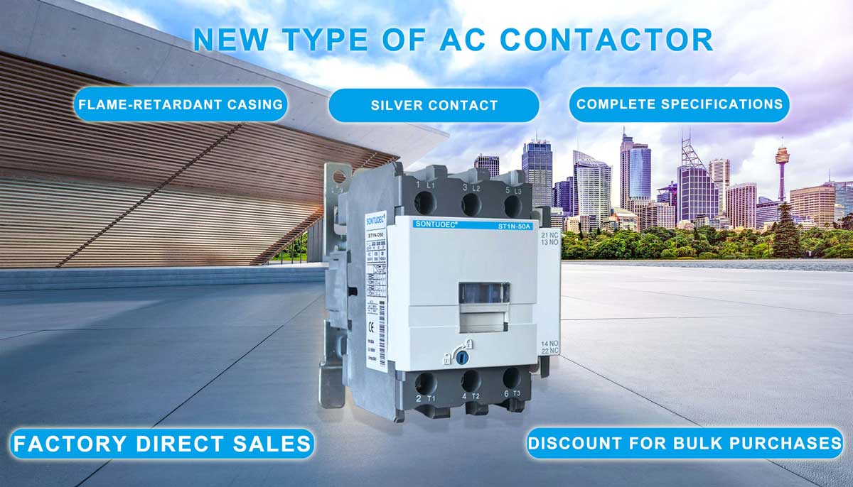 SONTUOEC అనేది చైనీస్ సరఫరాదారులు/తయారీదారులలో ఒకరు, వివిధ చిన్న ఎలక్ట్రికల్ ఉపకరణాల ఉత్పత్తిలో ప్రత్యేకత కలిగిన ST1N సిరీస్ AC కాంటాక్టర్ సర్క్యూట్లలో 660V AC 50Hz లేదా 60Hz వరకు రేట్ చేయబడిన వోల్టేజ్, 95A వరకు రేట్ చేయబడిన కరెంట్ని ఉపయోగించడానికి అనుకూలంగా ఉంటుంది. సహాయక కాంటాక్ట్ బ్లాక్, టైమర్ ఆలస్యం & మెషిన్-ఇంటర్లాకింగ్ పరికరం మొదలైన వాటితో కలిపి, ఇది ఆలస్యం కాంటాక్టర్, మెకానికల్ ఇంటర్లాకింగ్ కాంటాక్టర్, స్టార్-డెల్టా స్టార్టర్ అవుతుంది. థర్మల్ రిలేతో, ఇది విద్యుదయస్కాంత స్టార్టర్లో కలుపుతారు. IEC 60947-1 ప్రకారం కాంటాక్టర్ ఉత్పత్తి చేయబడింది.