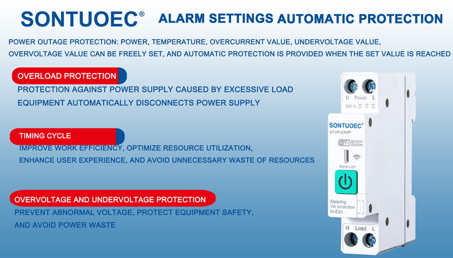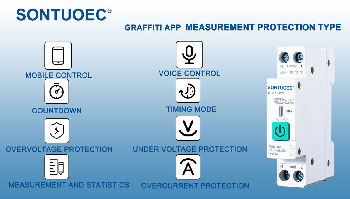 వైఫై ఇంటెలిజెంట్ హై-పవర్ స్విచ్ 220 వి మొబైల్ ఫోన్ రిమోట్ వైర్లెస్ కంట్రోల్ వోల్టేజ్ ప్రొటెక్టర్, సర్క్యూట్ నియంత్రణ కోసం తెలివైన పరిష్కారాలను అందించే చైనీస్ సరఫరాదారులు/తయారీదారులలో సోంటుయోక్ ఒకటి. అతని క్రియాత్మక లక్షణాలలో ఇంటెలిజెంట్ రిమోట్ కంట్రోల్, సెక్యూరిటీ ప్రొటెక్షన్ మరియు స్మార్ట్ హోమ్ సిస్టమ్లకు అనువైన ఖచ్చితమైన కొలత ఉన్నాయి, వినియోగదారులు వ్యక్తిగతీకరించిన దృశ్య సెట్టింగులు మరియు శక్తిని ఆదా చేసే నిర్వహణను సాధించడానికి మొబైల్ అనువర్తనం ద్వారా గృహోపకరణాలను రిమోట్గా నియంత్రించవచ్చు; ఇది వాణిజ్య, కార్యాలయం మరియు ఇతర ప్రదేశాలలో కూడా విస్తృతంగా ఉపయోగించబడుతుంది, కేంద్రీకృత మరియు తెలివైన విద్యుత్ పర్యవేక్షణ మరియు నియంత్రణను సులభతరం చేస్తుంది, నిర్వహణ సామర్థ్యాన్ని మెరుగుపరచడం మరియు ఆధునిక తెలివైన జీవితం మరియు పని యొక్క విభిన్న అవసరాలను తీర్చడం.